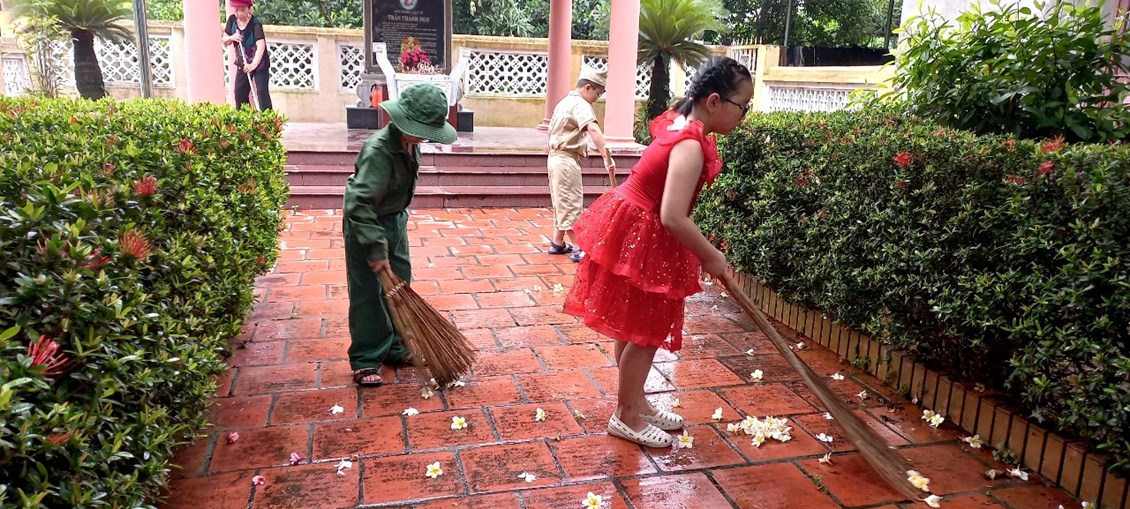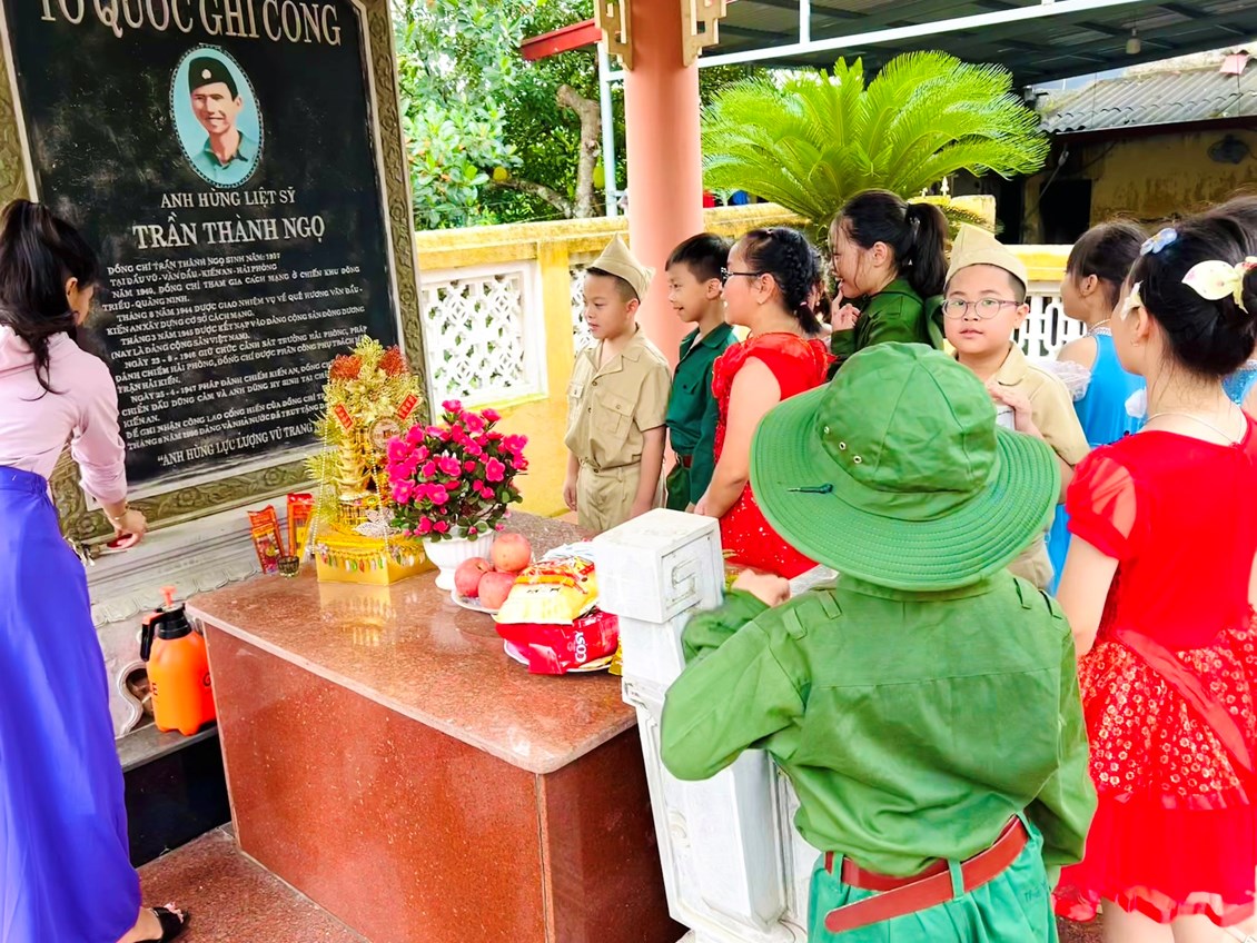 Nhằm hướng tới Kỷ niệm 75 năm Phong trào Trần Quốc Toản (2/1948- 2/2023). Các em học sinh trong nhóm kịch Tuổi hồng của nhà trường đã cùng các thầy cô giáo đến thăm viếng, quét dọn tại lăng Liệt sĩ Trần Thành Ngọ.
