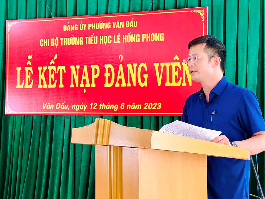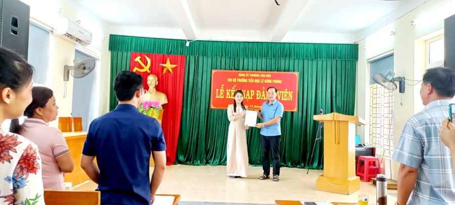 Lễ kết nạp đảng viên mới được diễn ra trong không khí trang nghiêm đồng chí Phạm Văn Xình- Bí thư chi bộ- Hiệu trưởng nhà trường lên trao Quyết định Kết nạp đảng cho đồng chí Hoàng Ngọc Anh đồng thời quán triệt nhiệm vụ, quyền hạn của người đảng viên, nhiệm vụ của Chi bộ. Phân công đảng viên chính thức giúp đỡ đồng chí: Hoàng Ngọc Anh trong thời gian đảng viên dự bị.