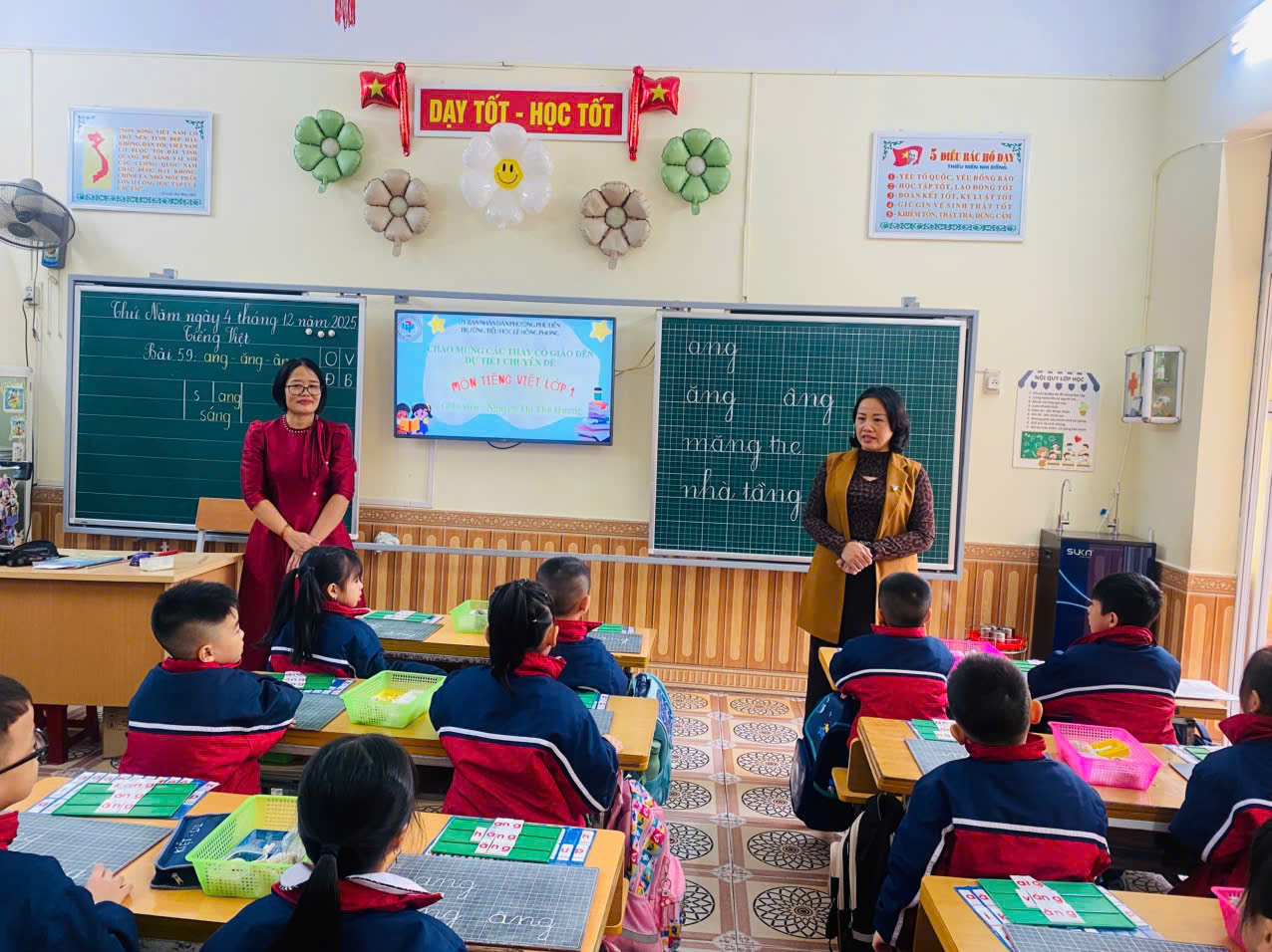 🌺 Sáng ngày 4/12/2025, tổ chuyên môn Khối 1 trường Tiểu học Lê Hồng Phong - phường Phù Liễn tổ chức Chuyên đề khối “Ứng dụng công nghệ AI trong tiết Tiếng Việt nhằm rèn kỹ năng đọc, viết cho học sinh lớp 1”. Thực hiện tiết dạy minh họa là cô giáo Nguyễn Thị Thu Hương và các em HS lớp 1A2 qua Bài 59: ang, ăng, âng (Tiết 1)